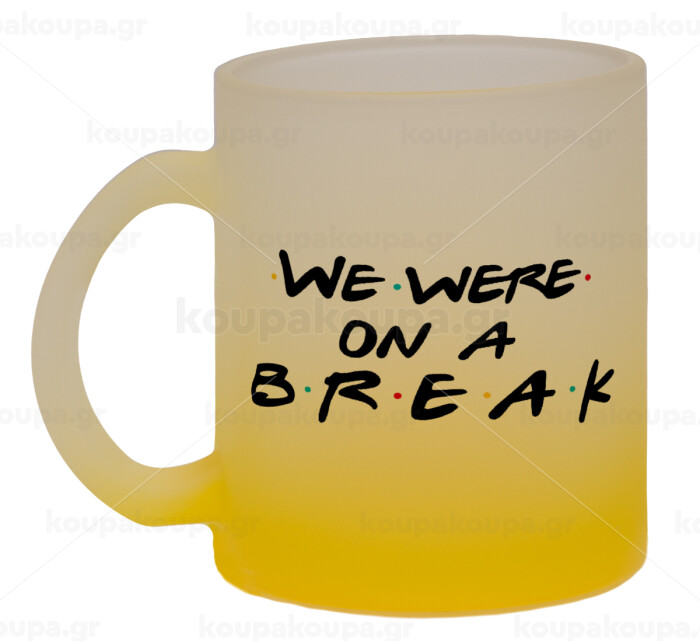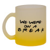 Friends we were on a break, Κούπα γυάλινη δίχρωμη με βάση το κίτρινο ματ, 330ml