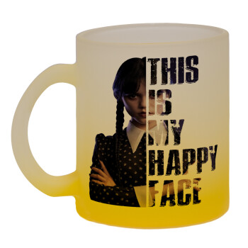 Wednesday, This is my happy face, Κούπα γυάλινη δίχρωμη με βάση το κίτρινο ματ, 330ml