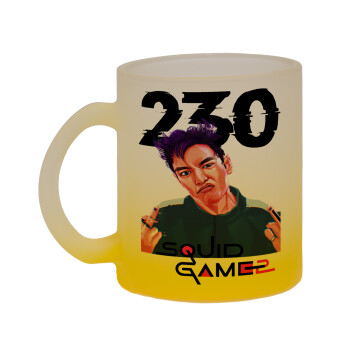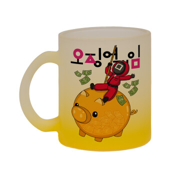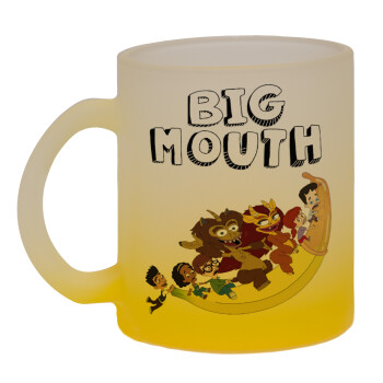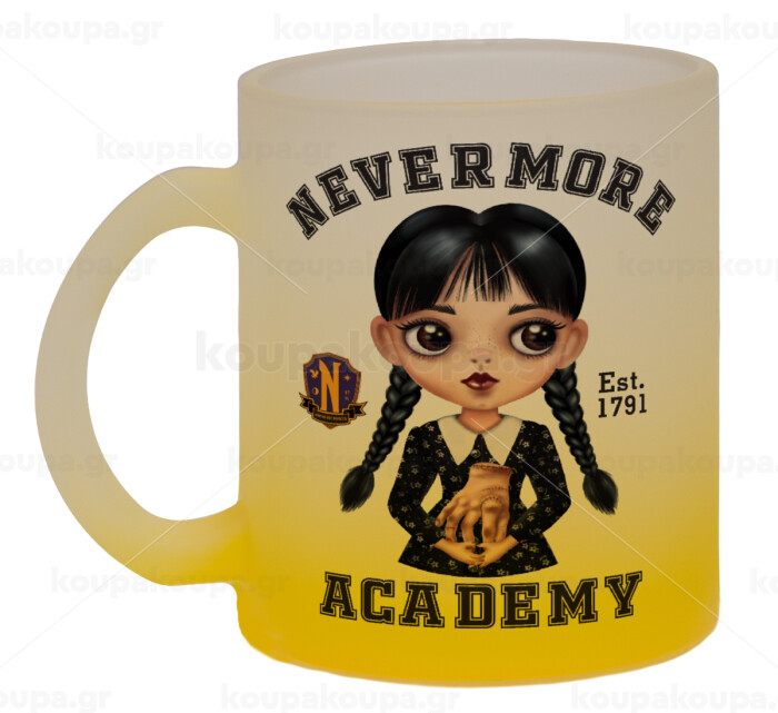 Wednesday Adams, nevermore, Κούπα γυάλινη δίχρωμη με βάση το κίτρινο ματ, 330ml