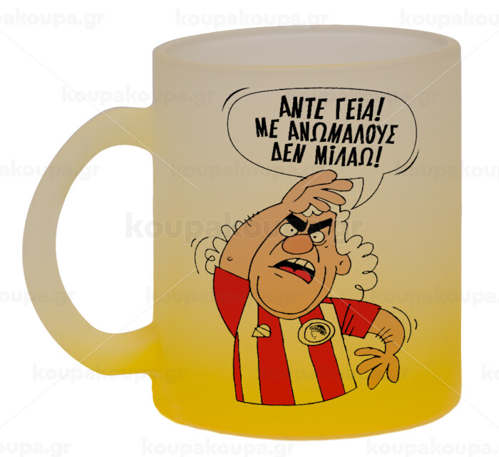 Τάκης, Άντε γεια, με ανώμαλους δεν μιλάω!, Κούπα γυάλινη δίχρωμη με βάση το κίτρινο ματ, 330ml