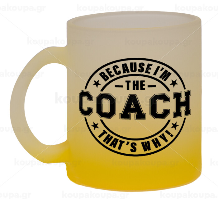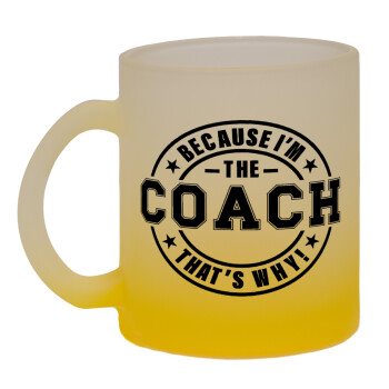 Because i'm the Coach, Κούπα γυάλινη δίχρωμη με βάση το κίτρινο ματ, 330ml