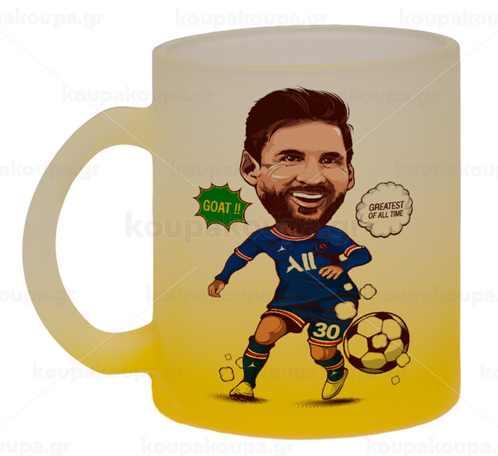 Lionel Messi drawing, Κούπα γυάλινη δίχρωμη με βάση το κίτρινο ματ, 330ml