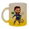 Lionel Messi drawing, Κούπα γυάλινη δίχρωμη με βάση το κίτρινο ματ, 330ml