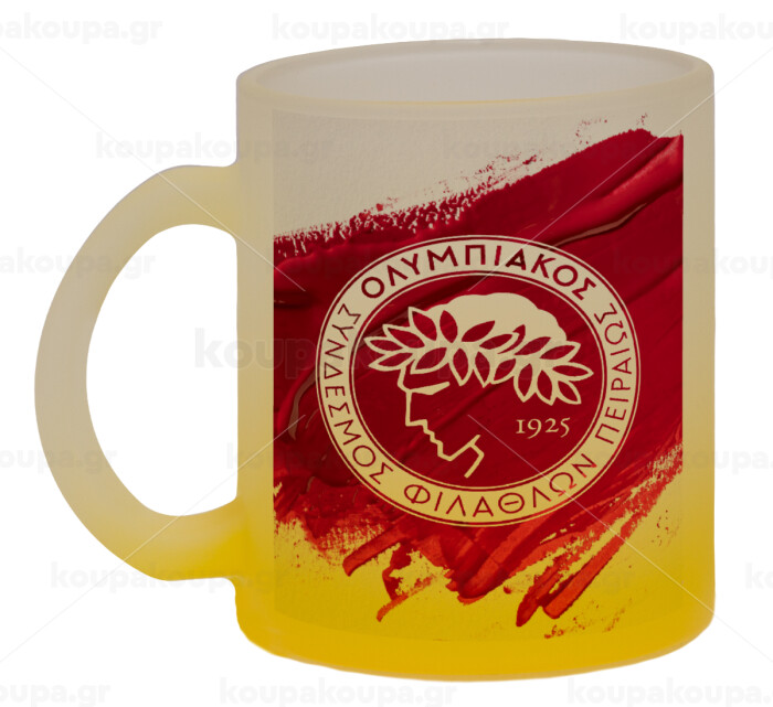 Olympiacos F.C., Κούπα γυάλινη δίχρωμη με βάση το κίτρινο ματ, 330ml