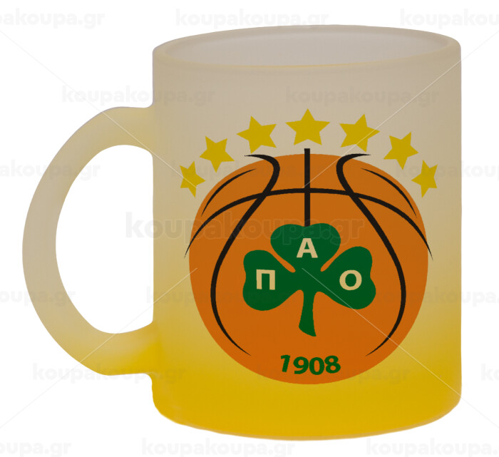 ΠΑΟ BC, Κούπα γυάλινη δίχρωμη με βάση το κίτρινο ματ, 330ml