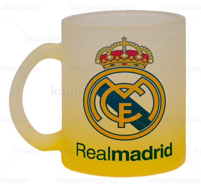 Real Madrid CF, Κούπα γυάλινη δίχρωμη με βάση το κίτρινο ματ, 330ml