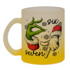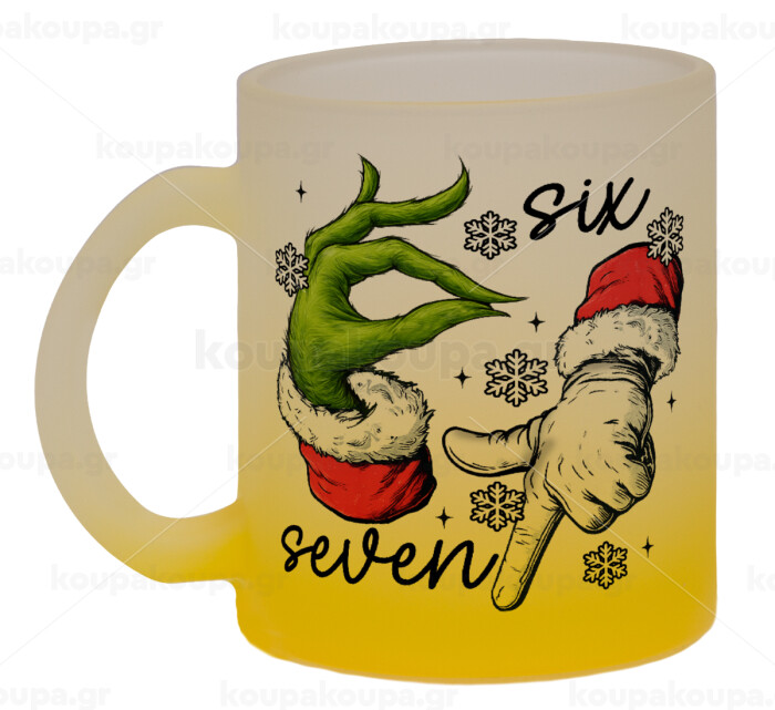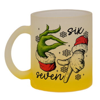 Christmas Meme SIX SEVEN (67), Κούπα γυάλινη δίχρωμη με βάση το κίτρινο ματ, 330ml