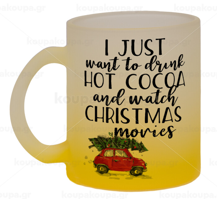 I just want to drink hot cocoa and watch christmas movies mini cooper, Κούπα γυάλινη δίχρωμη με βάση το κίτρινο ματ, 330ml