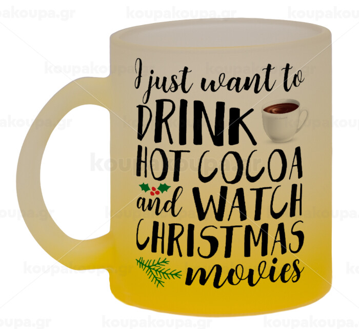 I just want to drink hot cocoa and watch christmas movies, Κούπα γυάλινη δίχρωμη με βάση το κίτρινο ματ, 330ml