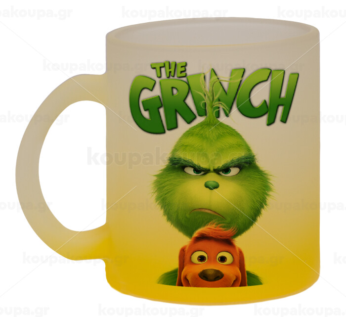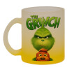 mr grinch, Κούπα γυάλινη δίχρωμη με βάση το κίτρινο ματ, 330ml