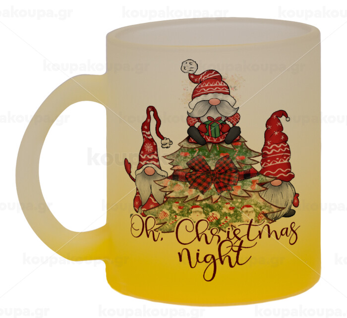 Oh Christmas Night, Κούπα γυάλινη δίχρωμη με βάση το κίτρινο ματ, 330ml