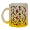 Santas, Deers & Trees, Κούπα γυάλινη δίχρωμη με βάση το κίτρινο ματ, 330ml