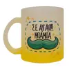 Σε αγαπώ μπαμπά!!!, Κούπα γυάλινη δίχρωμη με βάση το κίτρινο ματ, 330ml