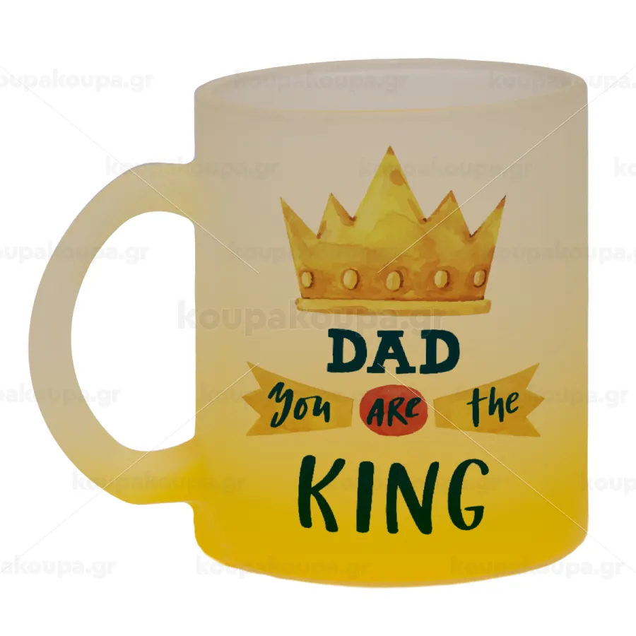 Dad you are the King, Κούπα γυάλινη δίχρωμη με βάση το κίτρινο ματ, 330ml