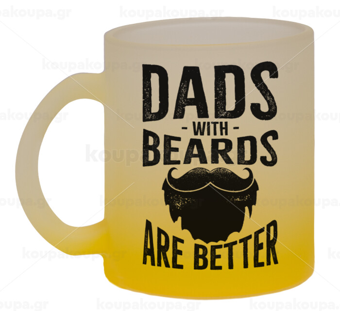 Dad's with beards are better, Κούπα γυάλινη δίχρωμη με βάση το κίτρινο ματ, 330ml