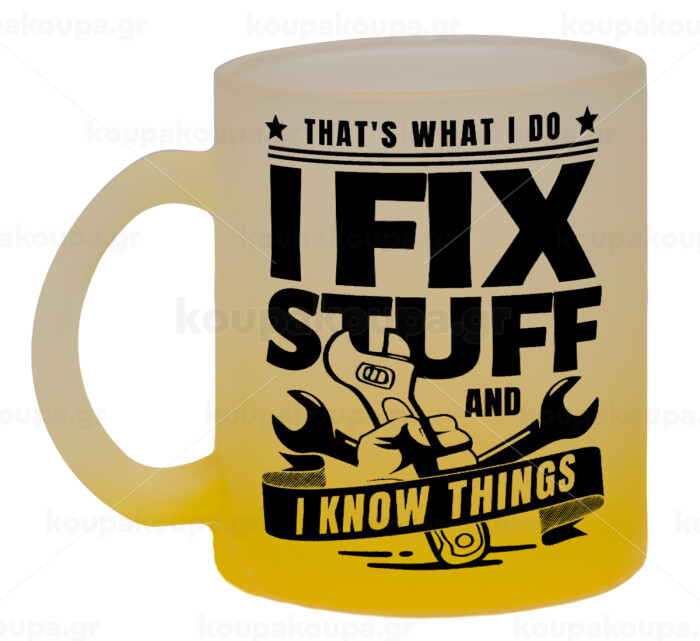 I fix stuff, Κούπα γυάλινη δίχρωμη με βάση το κίτρινο ματ, 330ml