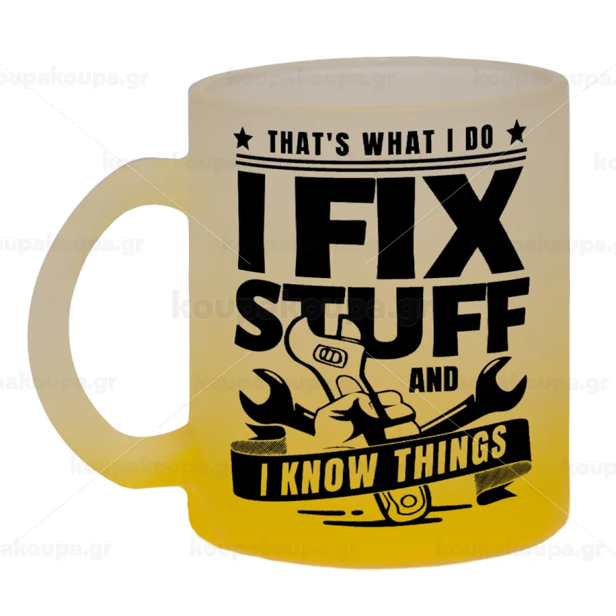 I fix stuff, Κούπα γυάλινη δίχρωμη με βάση το κίτρινο ματ, 330ml