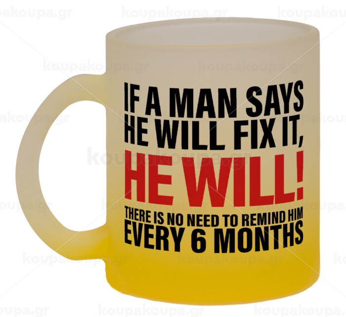If a man says he will fix it He will There is no need to remind him every 6 months, Κούπα γυάλινη δίχρωμη με βάση το κίτρινο ματ, 330ml
