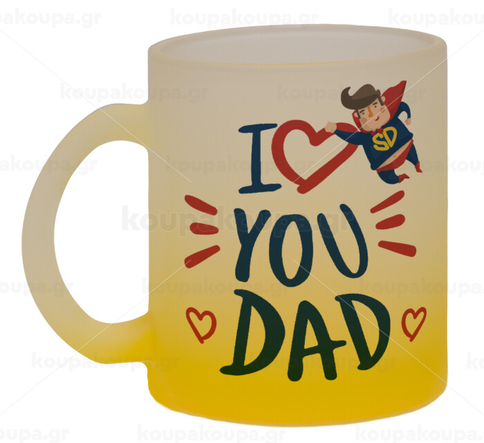 Super Dad, Κούπα γυάλινη δίχρωμη με βάση το κίτρινο ματ, 330ml