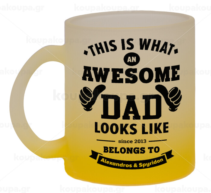 This is what an Awesome DAD looks like, Κούπα γυάλινη δίχρωμη με βάση το κίτρινο ματ, 330ml