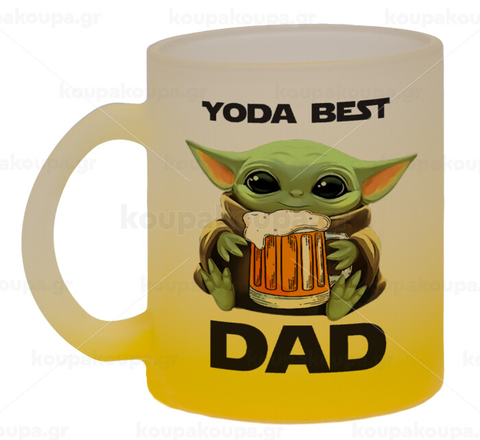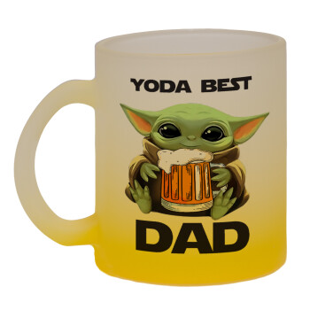 Yoda Best Dad, Κούπα γυάλινη δίχρωμη με βάση το κίτρινο ματ, 330ml