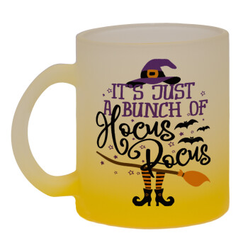 It's just a bunch of hocus pocus - halloween, Κούπα γυάλινη δίχρωμη με βάση το κίτρινο ματ, 330ml