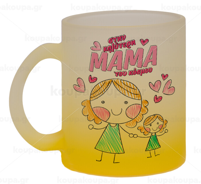 Στην καλύτερη μαμά του κόσμου, comic, Κούπα γυάλινη δίχρωμη με βάση το κίτρινο ματ, 330ml