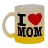 I LOVE MOM, Κούπα γυάλινη δίχρωμη με βάση το κίτρινο ματ, 330ml