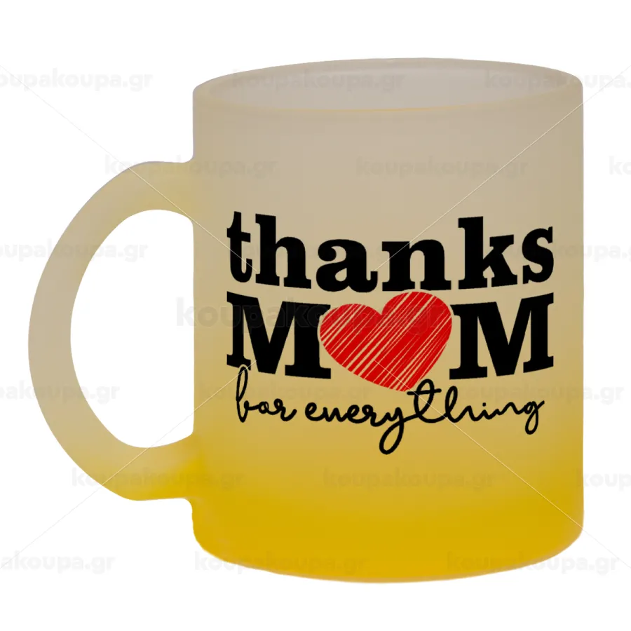 Thanks mom for everything, Κούπα γυάλινη δίχρωμη με βάση το κίτρινο ματ, 330ml