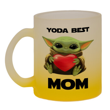 Yoda Best mom, Κούπα γυάλινη δίχρωμη με βάση το κίτρινο ματ, 330ml