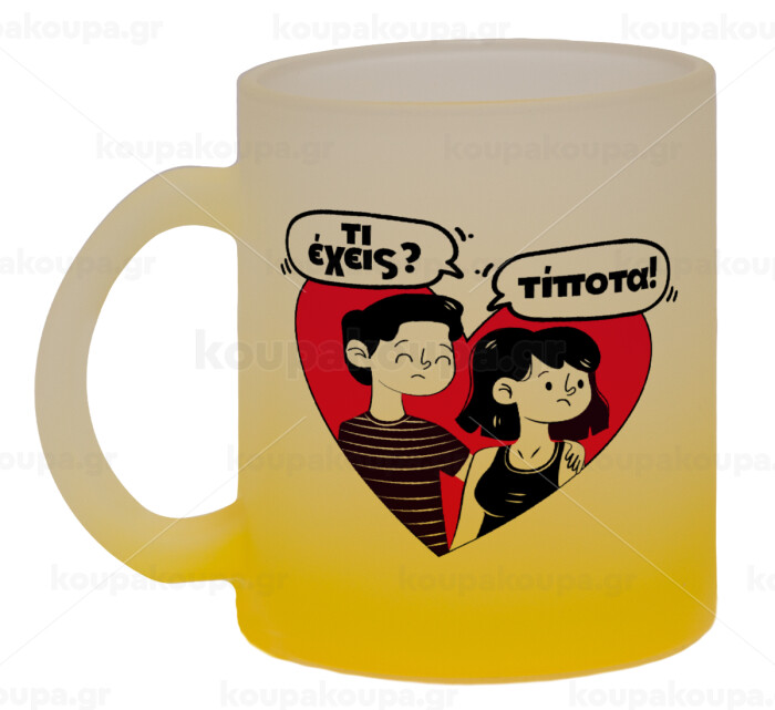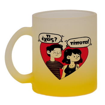 Τι έχεις? Τίποτα!, Κούπα γυάλινη δίχρωμη με βάση το κίτρινο ματ, 330ml