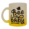 Bee my BABY!!!, Κούπα γυάλινη δίχρωμη με βάση το κίτρινο ματ, 330ml