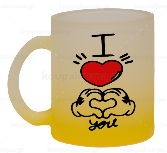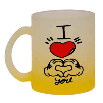 comics hands love, Κούπα γυάλινη δίχρωμη με βάση το κίτρινο ματ, 330ml