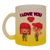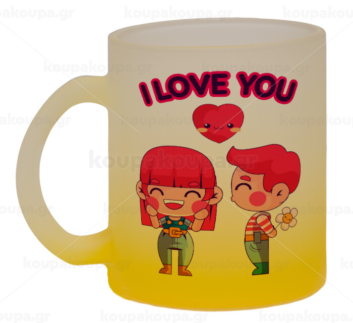 Couple, I love you, Κούπα γυάλινη δίχρωμη με βάση το κίτρινο ματ, 330ml