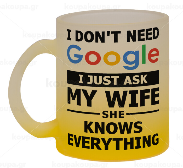 I don't need Google, just ask my WIFE, Κούπα γυάλινη δίχρωμη με βάση το κίτρινο ματ, 330ml