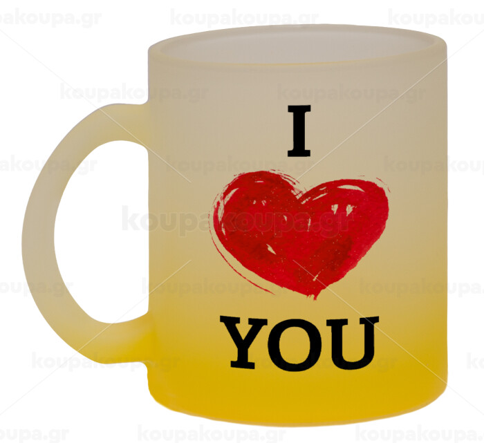 I Love You, Κούπα γυάλινη δίχρωμη με βάση το κίτρινο ματ, 330ml