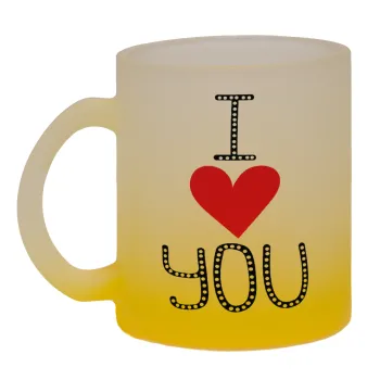 I Love You small dots, Κούπα γυάλινη δίχρωμη με βάση το κίτρινο ματ, 330ml