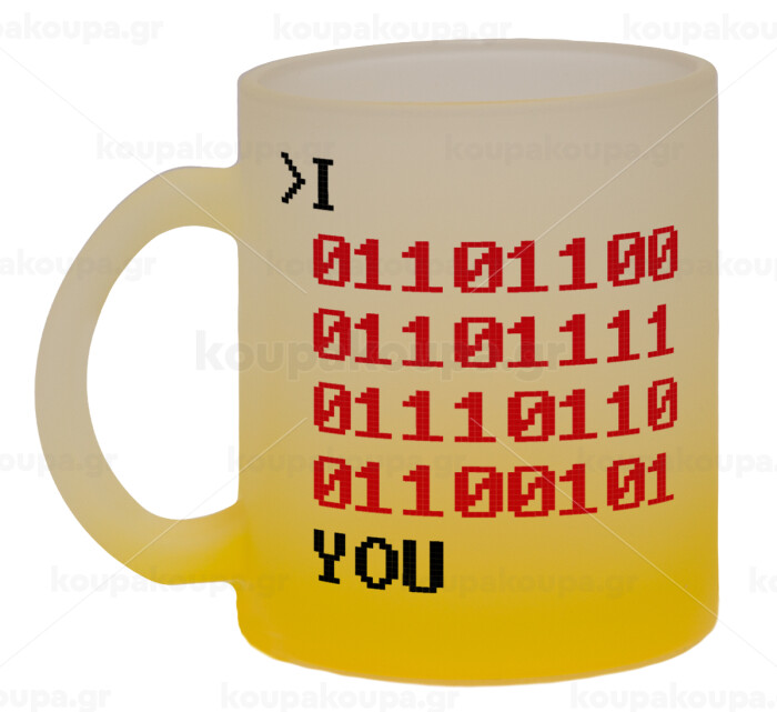 I .... YOU, binary secret MSG, Κούπα γυάλινη δίχρωμη με βάση το κίτρινο ματ, 330ml