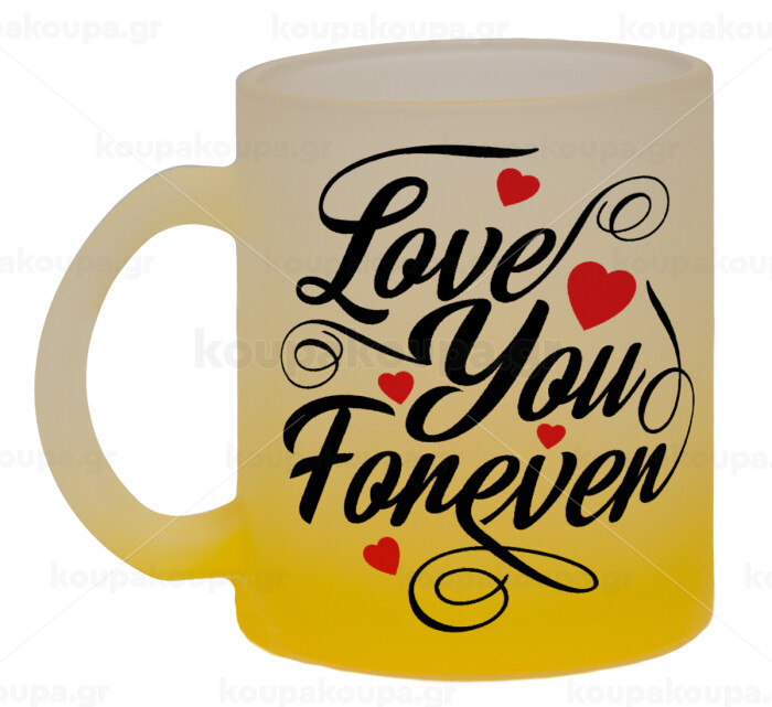 Love you forever, Κούπα γυάλινη δίχρωμη με βάση το κίτρινο ματ, 330ml