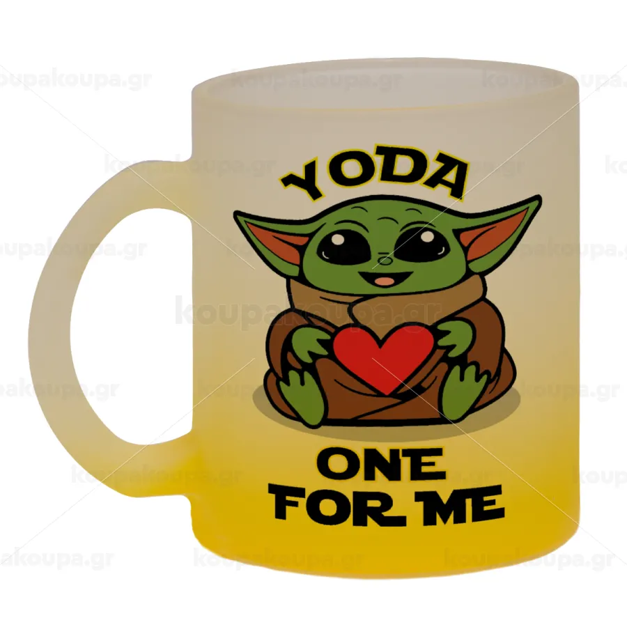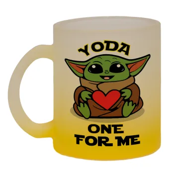 Yoda, one for me , Κούπα γυάλινη δίχρωμη με βάση το κίτρινο ματ, 330ml