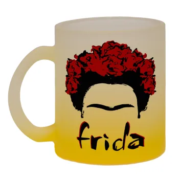 Frida, Κούπα γυάλινη δίχρωμη με βάση το κίτρινο ματ, 330ml