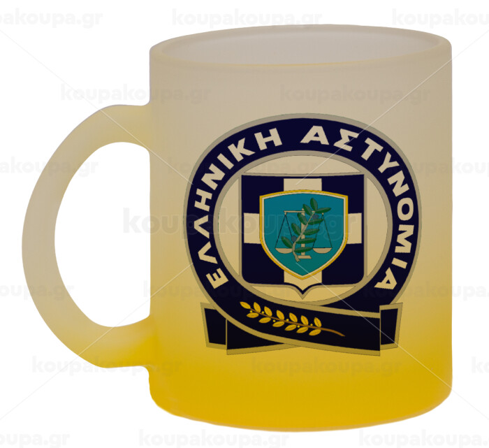 Ελληνική Αστυνομία, Κούπα γυάλινη δίχρωμη με βάση το κίτρινο ματ, 330ml