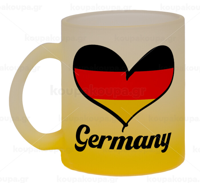 Germany flag, Κούπα γυάλινη δίχρωμη με βάση το κίτρινο ματ, 330ml
