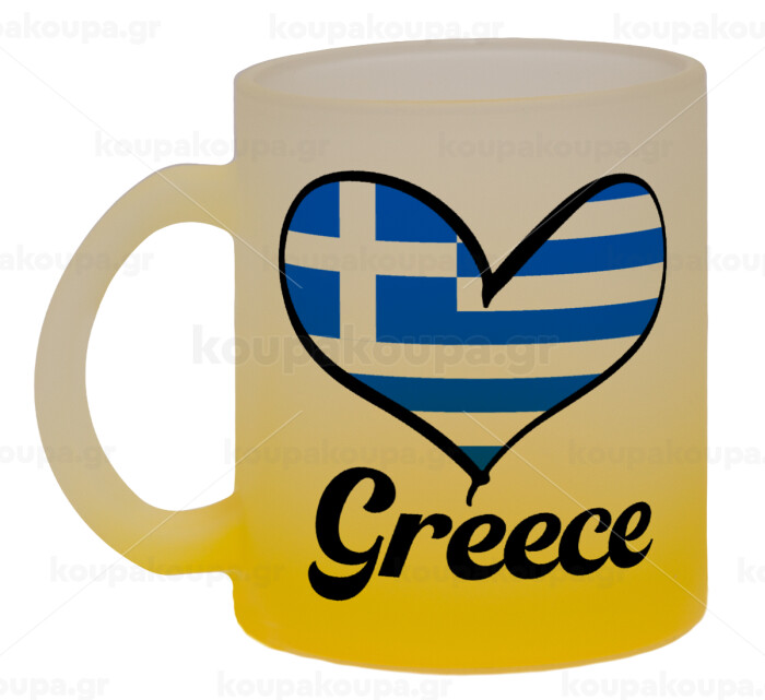 Greece flag, Κούπα γυάλινη δίχρωμη με βάση το κίτρινο ματ, 330ml