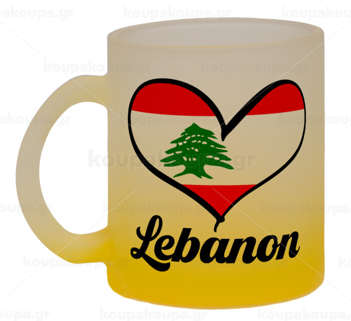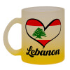 Lebanon flag, Κούπα γυάλινη δίχρωμη με βάση το κίτρινο ματ, 330ml