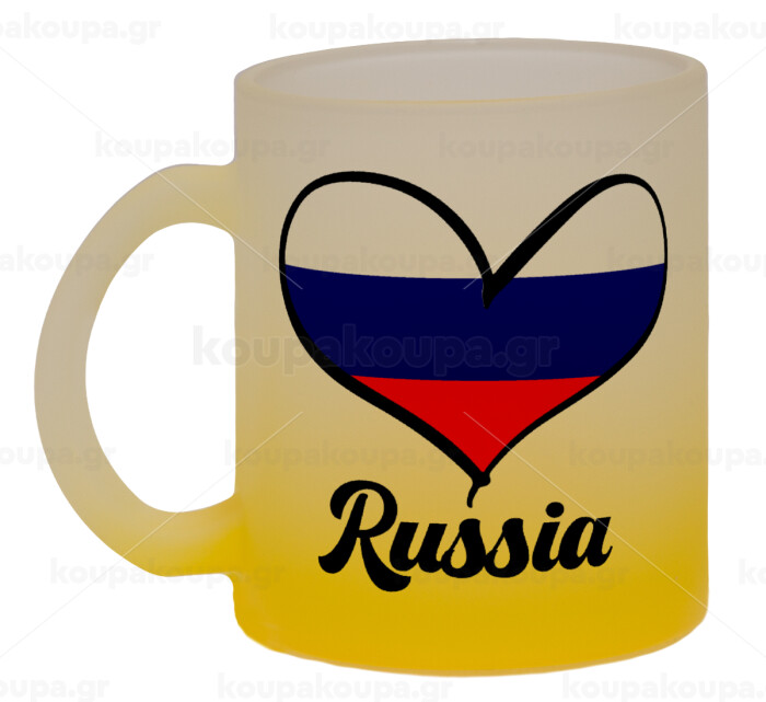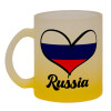 Russia flag, Κούπα γυάλινη δίχρωμη με βάση το κίτρινο ματ, 330ml