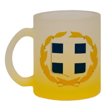 Hellas Εθνόσημο, Κούπα γυάλινη δίχρωμη με βάση το κίτρινο ματ, 330ml