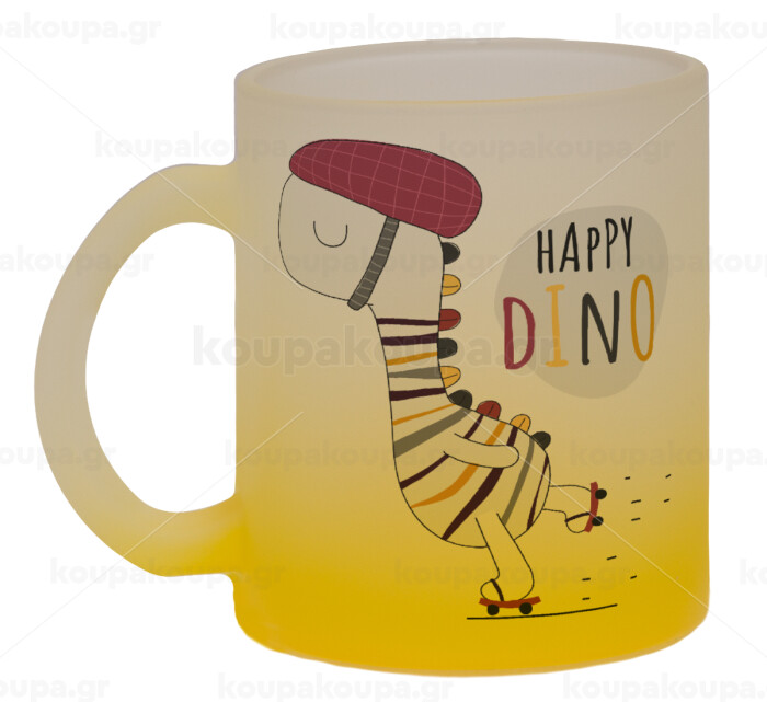 Happy Dino, Κούπα γυάλινη δίχρωμη με βάση το κίτρινο ματ, 330ml