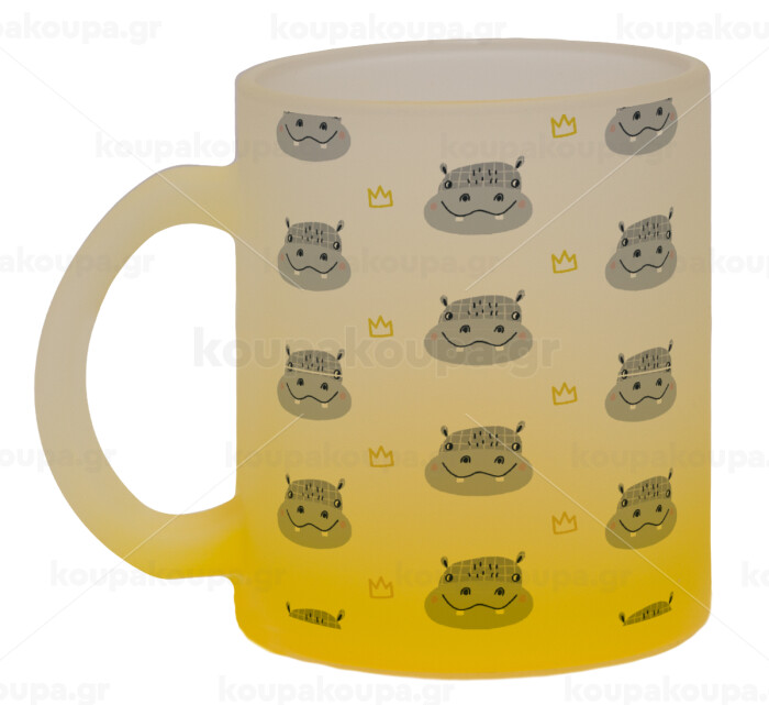 Hippo, Κούπα γυάλινη δίχρωμη με βάση το κίτρινο ματ, 330ml