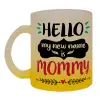 Hello, my new name is Mommy, Κούπα γυάλινη δίχρωμη με βάση το κίτρινο ματ, 330ml